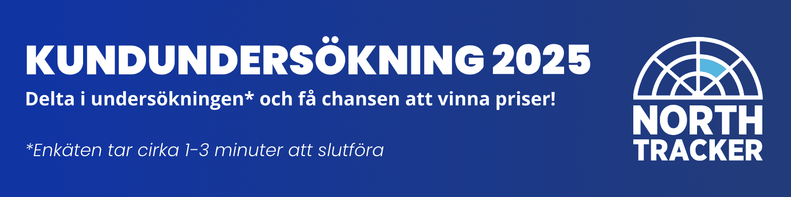 Hjälp oss att bli bättre! Genom att delta i kundundersökningen kommer du hjälpa NorthTracker att utvecklas och bli bättre. Formuläret tar cirka 1-3 minuter att genomföra!