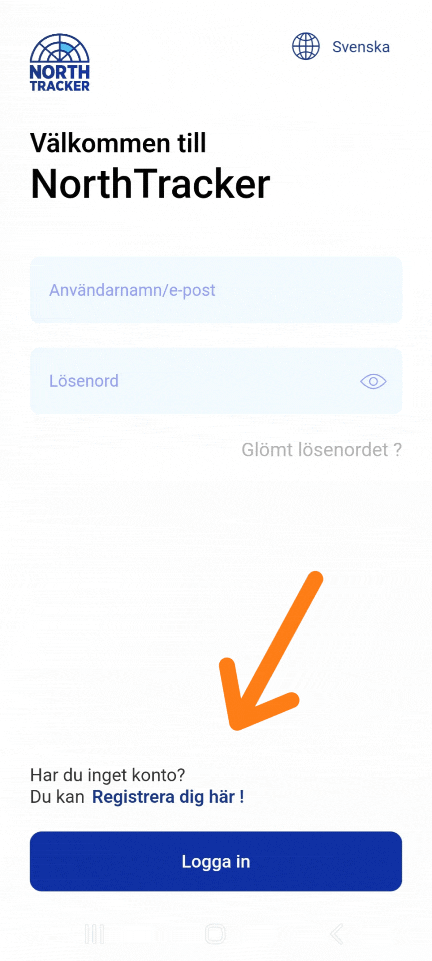 > Klicka på "Registera dig här"
